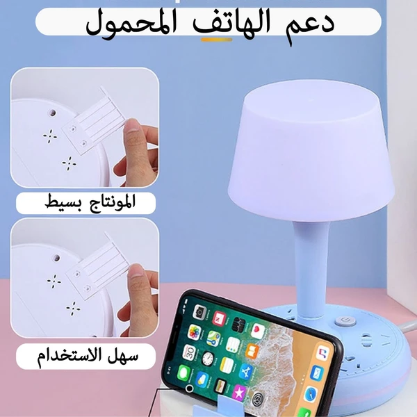 مصباح LED مزود بمنافذ الشحن وحامل الهاتف